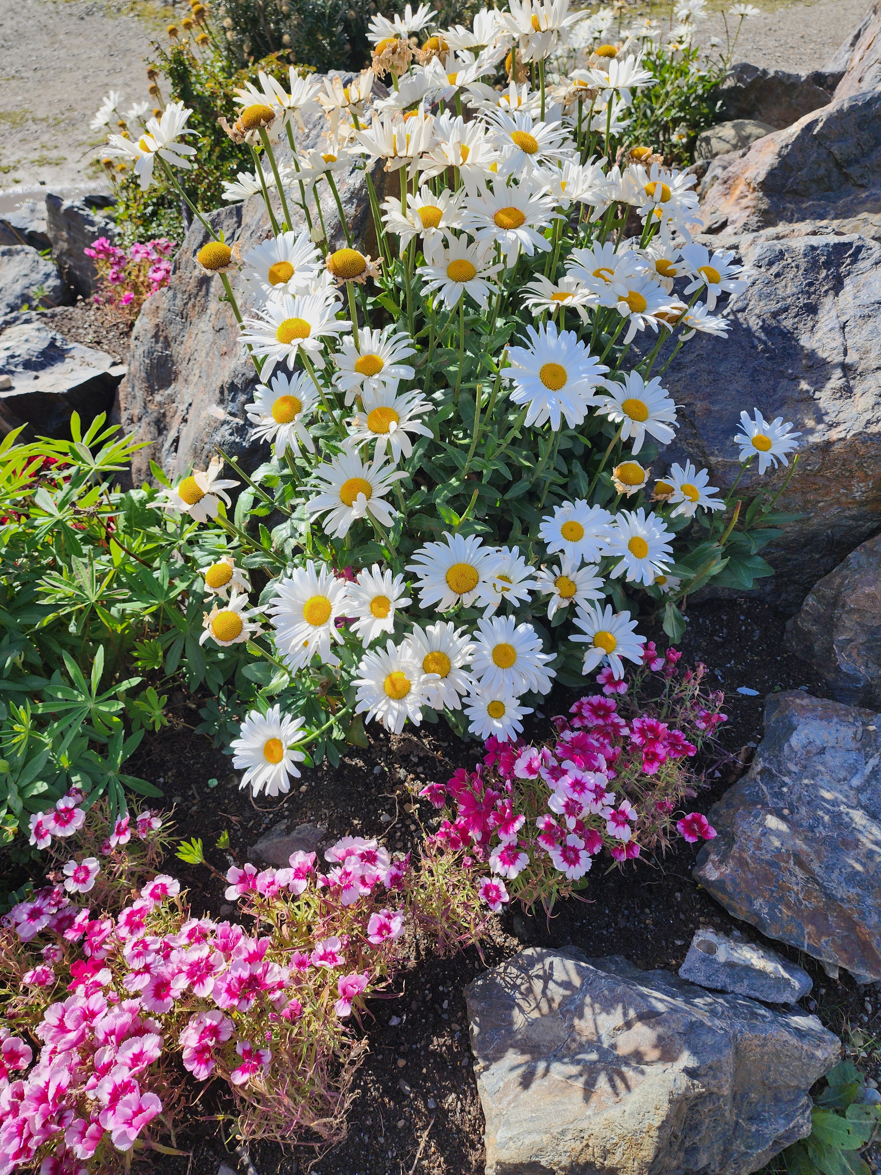 | White daisies, possibly also from North America, also bloom in Punta Arenas. |